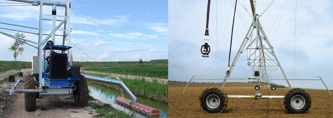 Această mașină este o variantă a sistemului lateral. Particularitatea sa,este că rotația este produsă automat și ne permite, să irigăm atât versiunea laterală, cât și cea circulară, utilizând o tehnologie care permite schimbarea echipamentului de aspersoare în funcție de mișcarea pe care o faceți.