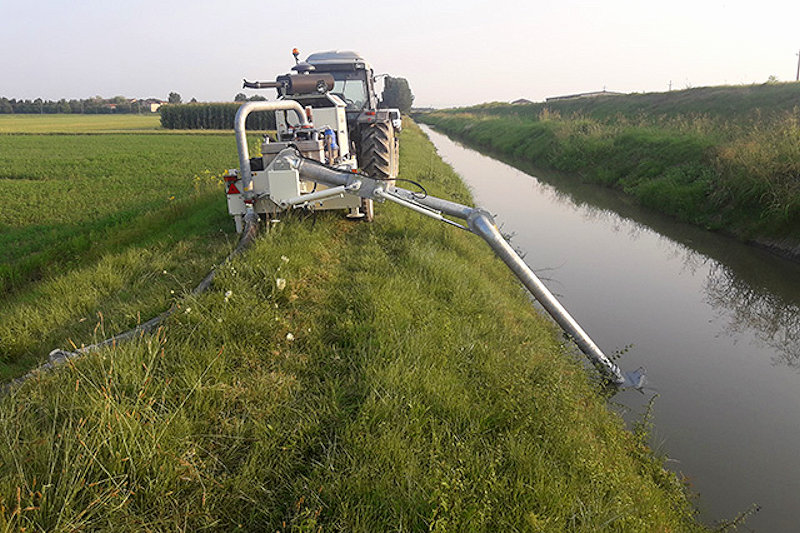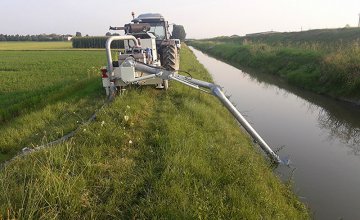 - braț de aspirație cu troliu și rotație hidraulică echipat cu distribuitor hidraulic cu 2 pârghii și articulații rapide la tractor.